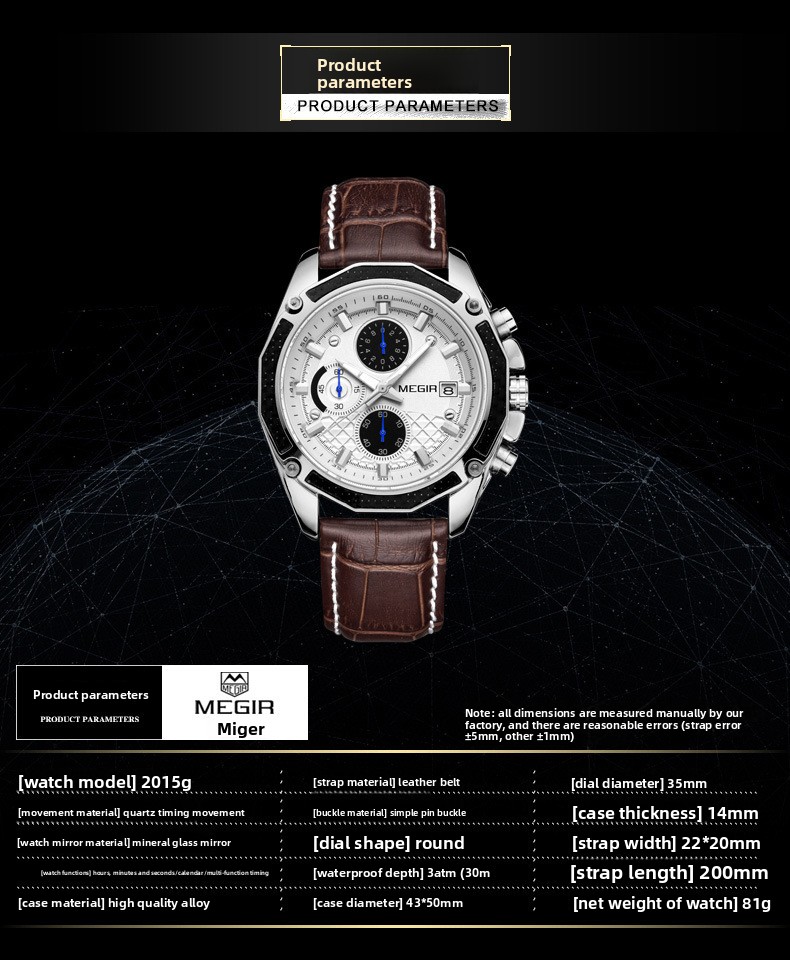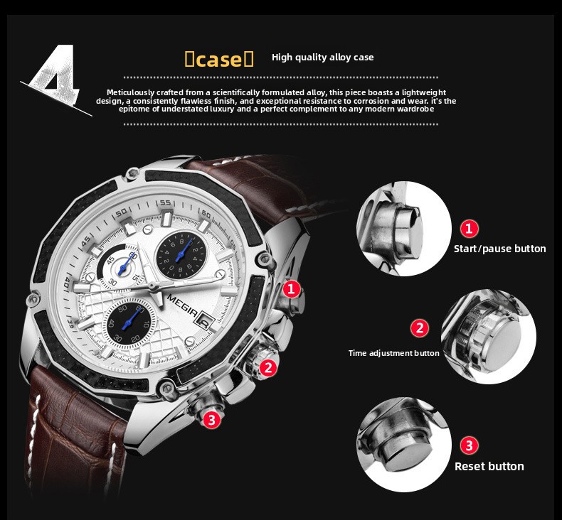 Quartz Movement: Reliable LD57 quartz movement sourced from China ensures accurate timekeeping.