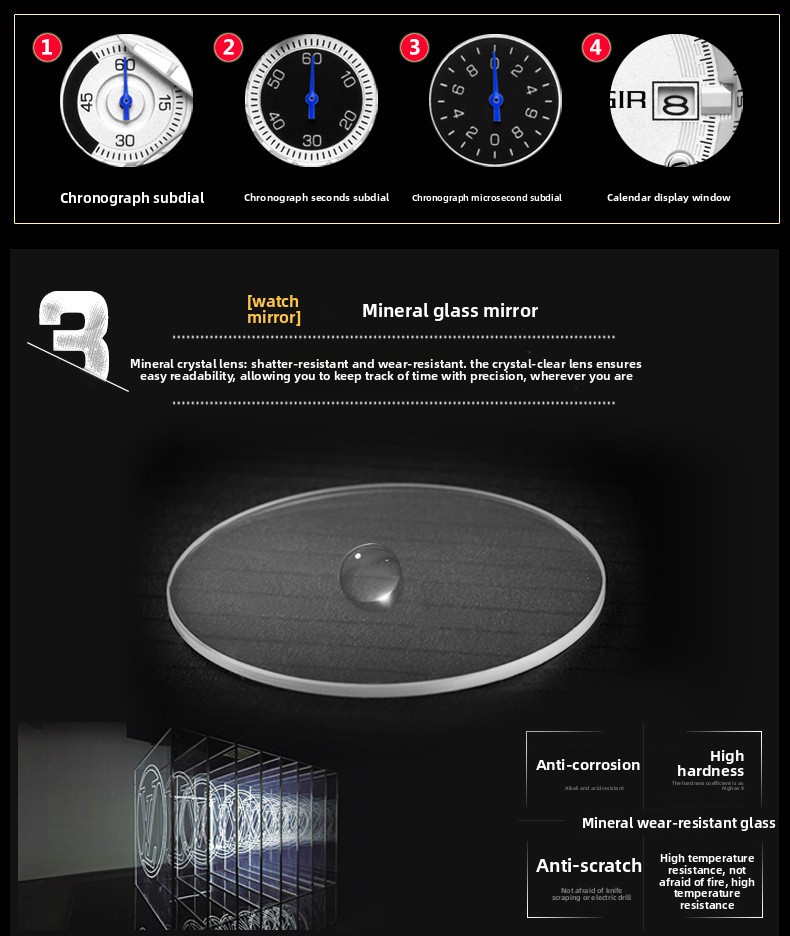 Multifunctional Design: Combines chronograph, calendar, and small three-hand features for practical