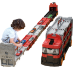 Multi-Functional Play: Combines storage, transformation, and track racing in one toy set.
